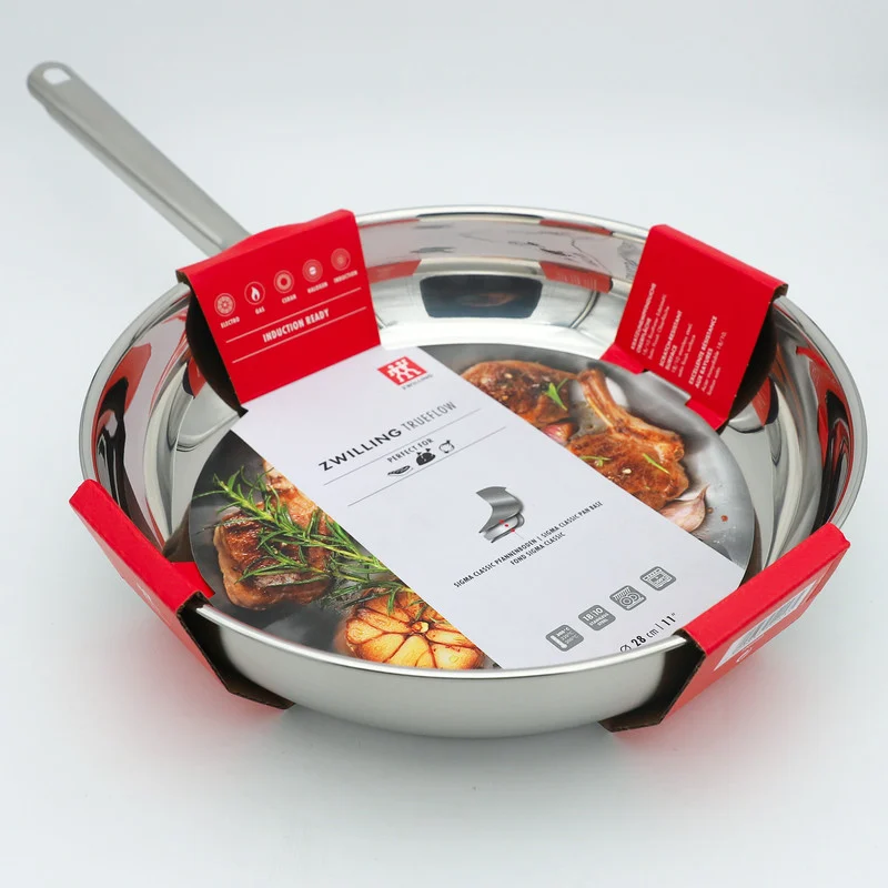 تابه زولینگ مدل ZWILLING TrueFlow از مجموعه ظروف حرفه‌ای برند معتبر زولینگ آلمان، گزینه‌ای ایده‌آل برای آشپزهایی است که کیفیت، دوام و عملکرد را در یک محصول می‌خواهند. این تابه تمام استیل با دسته‌ای بسیار محکم و مقاوم طراحی شده و از استیل ضد زنگ ۱۸/۱۰ ساخته شده است؛ کاملاً بهداشتی، فاقد مواد شیمیایی و بدون تاثیر روی طعم غذا.