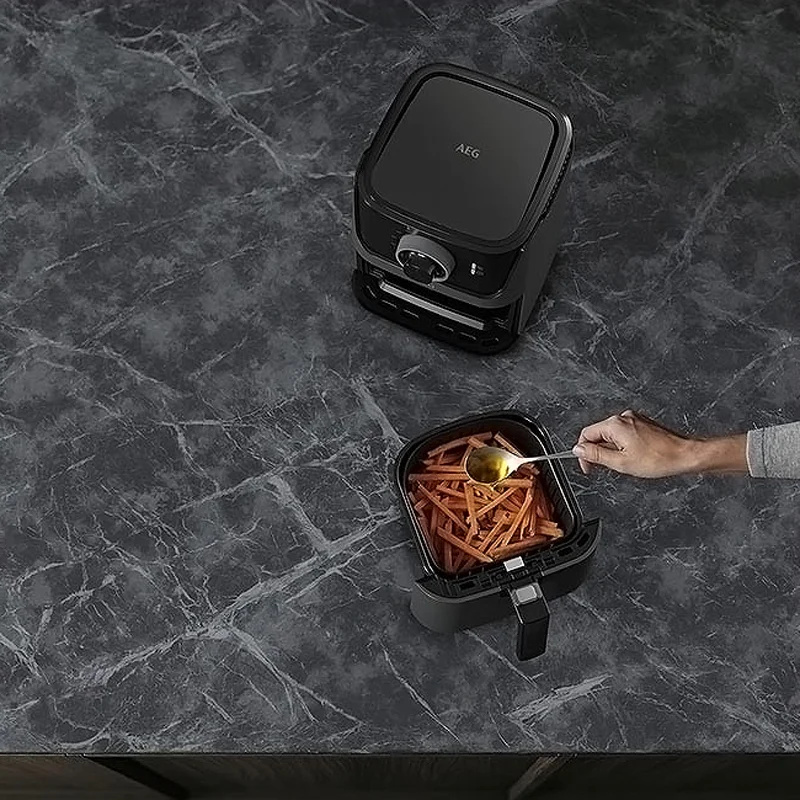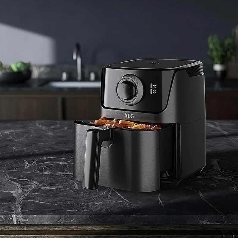 - فناوری حرارت هوای داغ: سرخ کن بدون روغن آاگ مدل AF5-1-4GB از فناوری پیشرفته حرارت هوای داغ برای پختوپز استفاده میکند. این سیستم بهطور یکنواخت دمای داخل دستگاه را پخش میکند و غذاها را به طور کامل سرخ میکند، در حالی که مقدار زیادی از چربیها و روغنها از بین میروند. این ویژگی باعث میشود که غذای شما سالمتر و کمچربتر باشد.