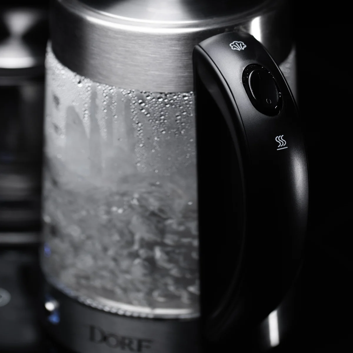 کتری برقی این دستگاه دارای ظرفیت ۱.۷ لیتر است که برای تهیه مقدار زیادی آب جوش در کمترین زمان بسیار مناسب خواهد بود. در کنار آن، قوری پیرکس با ظرفیت ۰.۸ لیتر طراحی شده که برای دمکردن چای یا قهوه انتخابی عالی است. جنس پیرکس علاوه بر مقاومت بالا در برابر حرارت، شفافیت لازم را دارد تا بتوانید فرآیند دمکشیدن نوشیدنی را بهطور کامل مشاهده کنید.